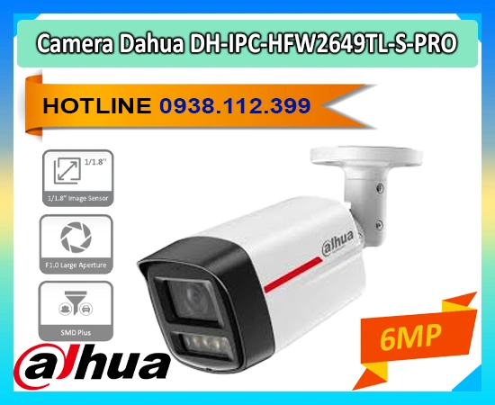 Camera Thân DH-IPC-HFW2649TL-S-PRO (6MP) cung cấp hình ảnh 6MP với cảm biến CMOS 1/1. 8”. Khả năng Starlight 0.0007 Lux@F1